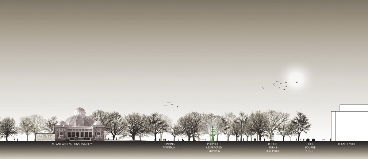 The aim of this installation is to spark an appreciation for the park’s noble past, and manifest the public imagination towards a renewal of Allan Gardens which could possibly include the ultimate restoration of the original Victorian Fountain that, even today, continues to endure as an important symbol of the park.