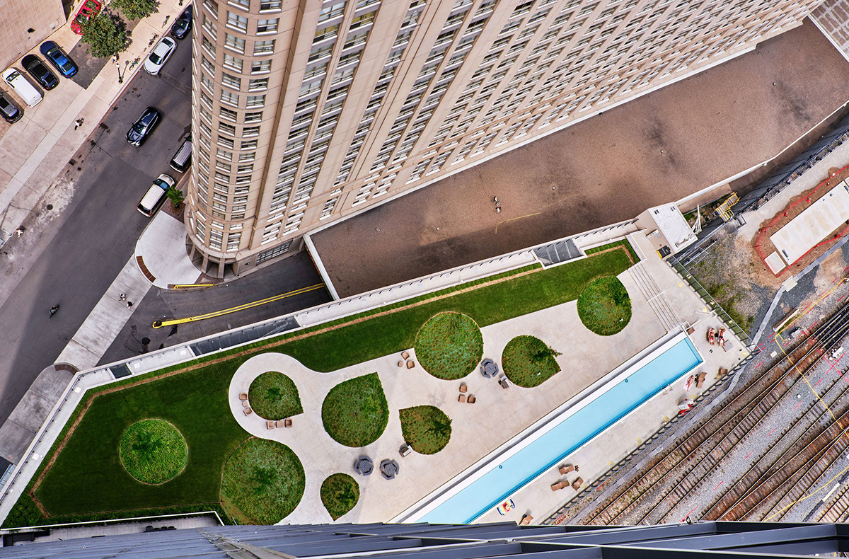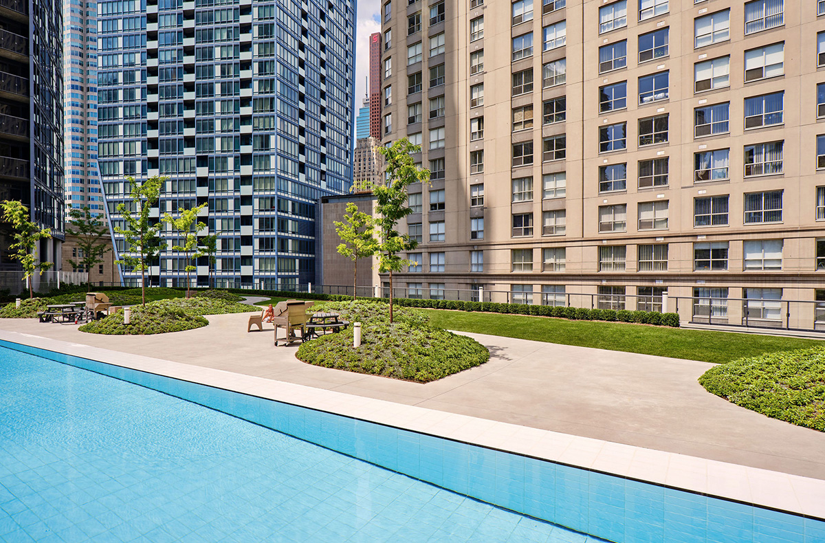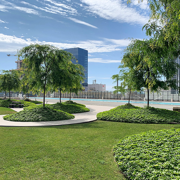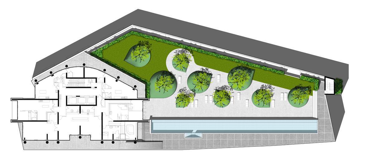 Axonometric view of the pool and garden - Claude Cormier et Associés
