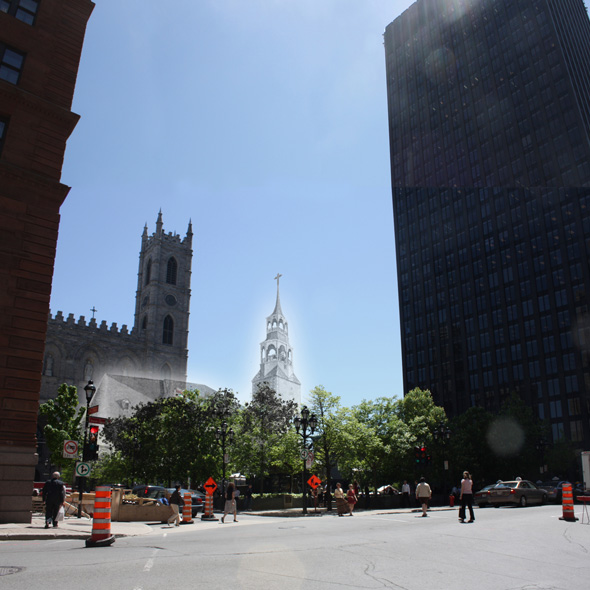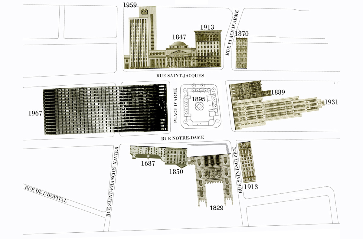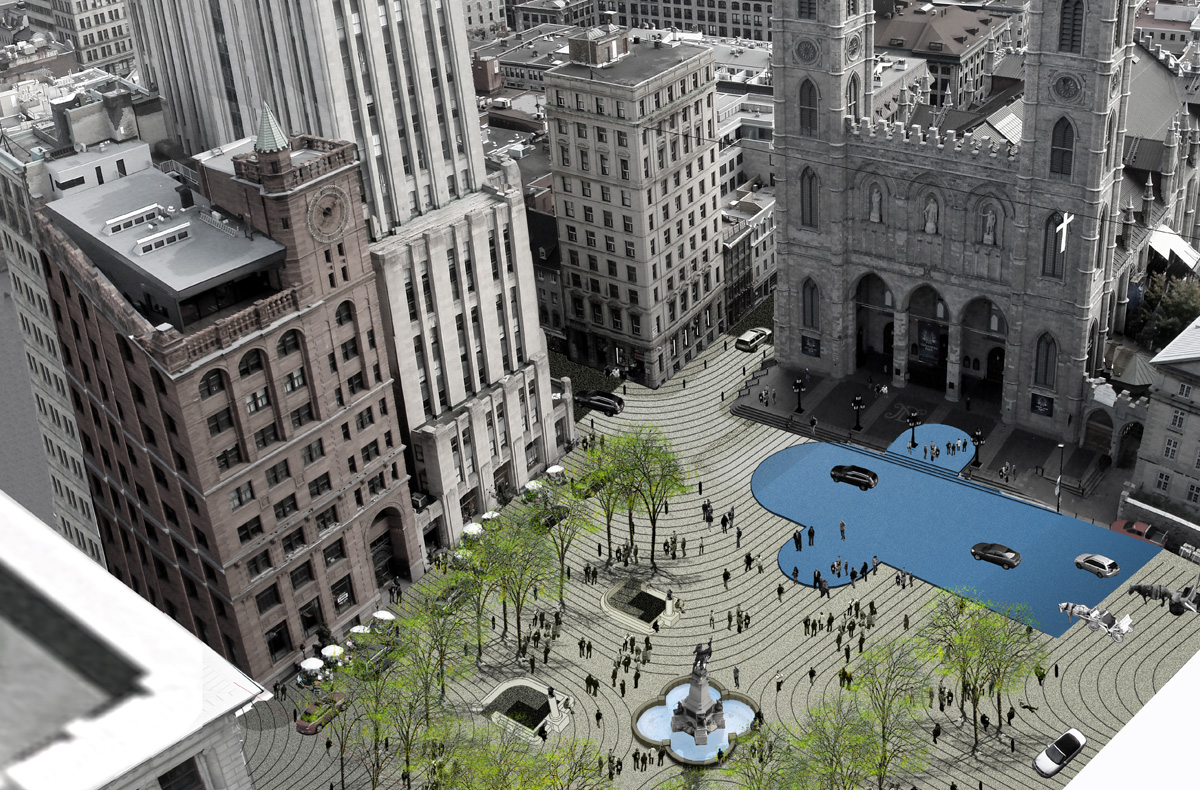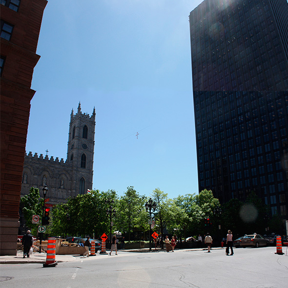 One of Montreal’s oldest public places, Place d’Armes is the first square in the city to achieve the intensity of peripheral activity necessary to support the type of minimal public space one finds in historic European cities. A space that is minimal in expression and open to appropriation – a space of imagination.