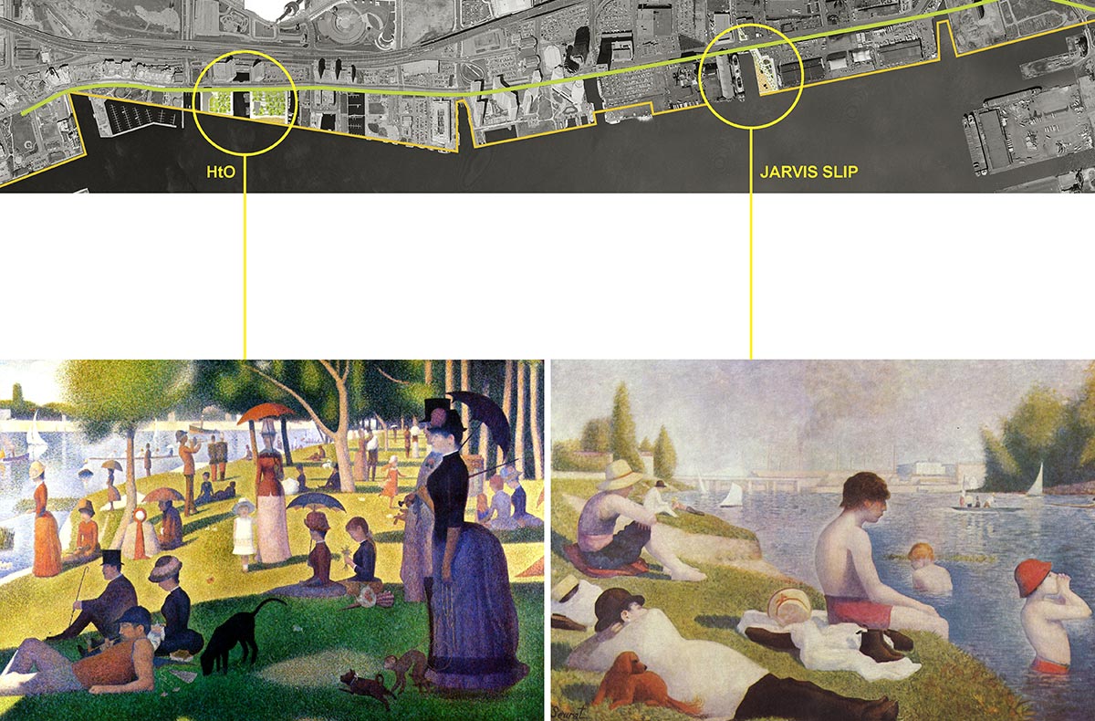 Plan, CC+A; An Afternoon at la Grande Jatte, Georges Seurat, 1884-1886; Bathing at Asnières, Georges Seurat, 1884