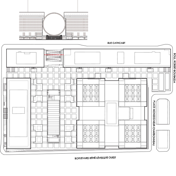 Élévation - CCxA, à partir de la coupe originale du projet Et Sillon réalisé par civiliti + Mandaworks et SNC Lavalin sur l'avenue McGill College