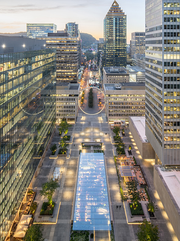 Rendu, revitalisation de l'Esplanade de la Place Ville-Marie - Sid Lee Architecture / Menkès Shooner Dagenais LeTourneux Architectes / Ivanhoé Cambridge