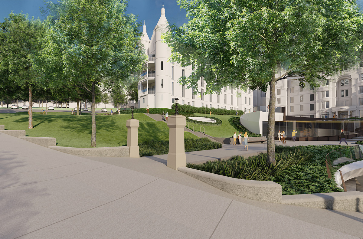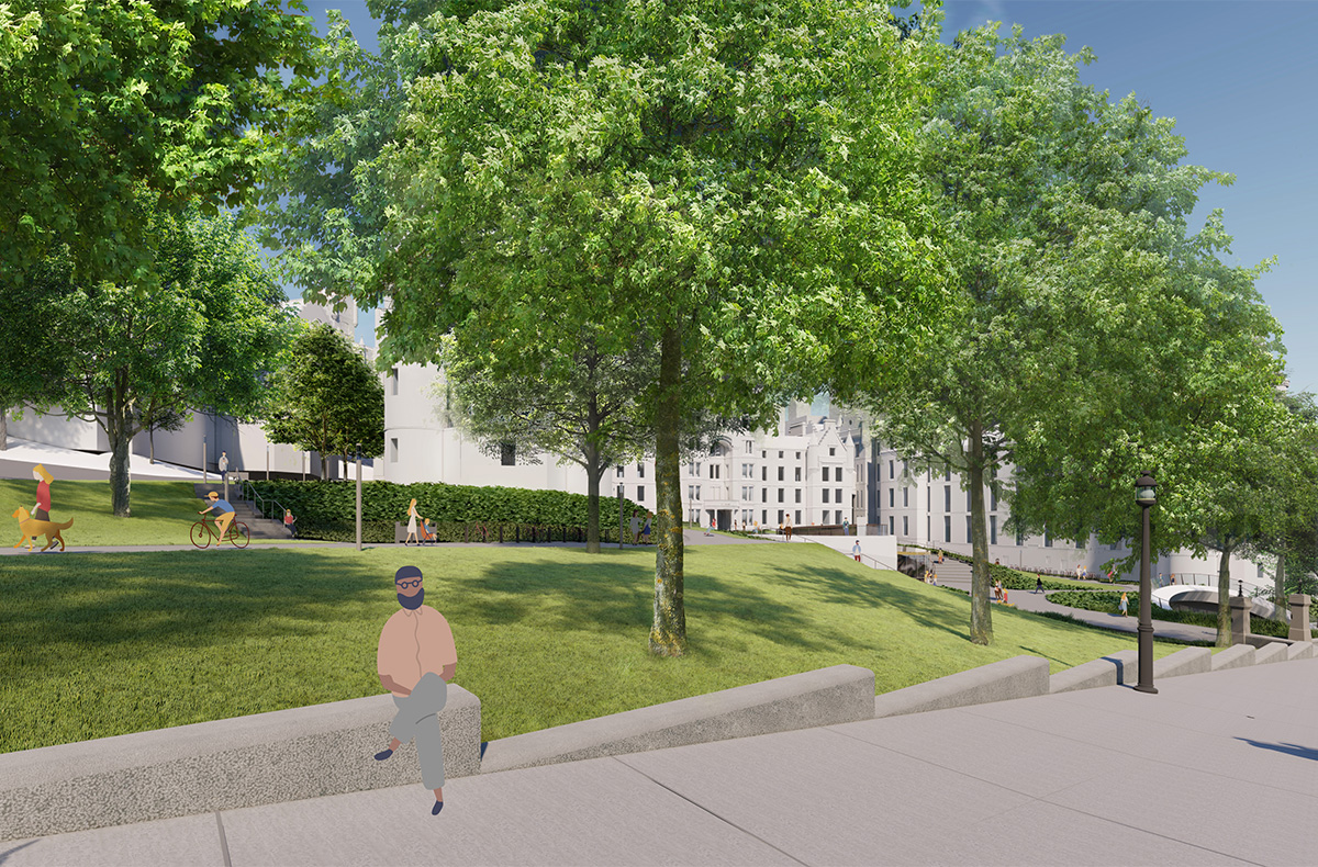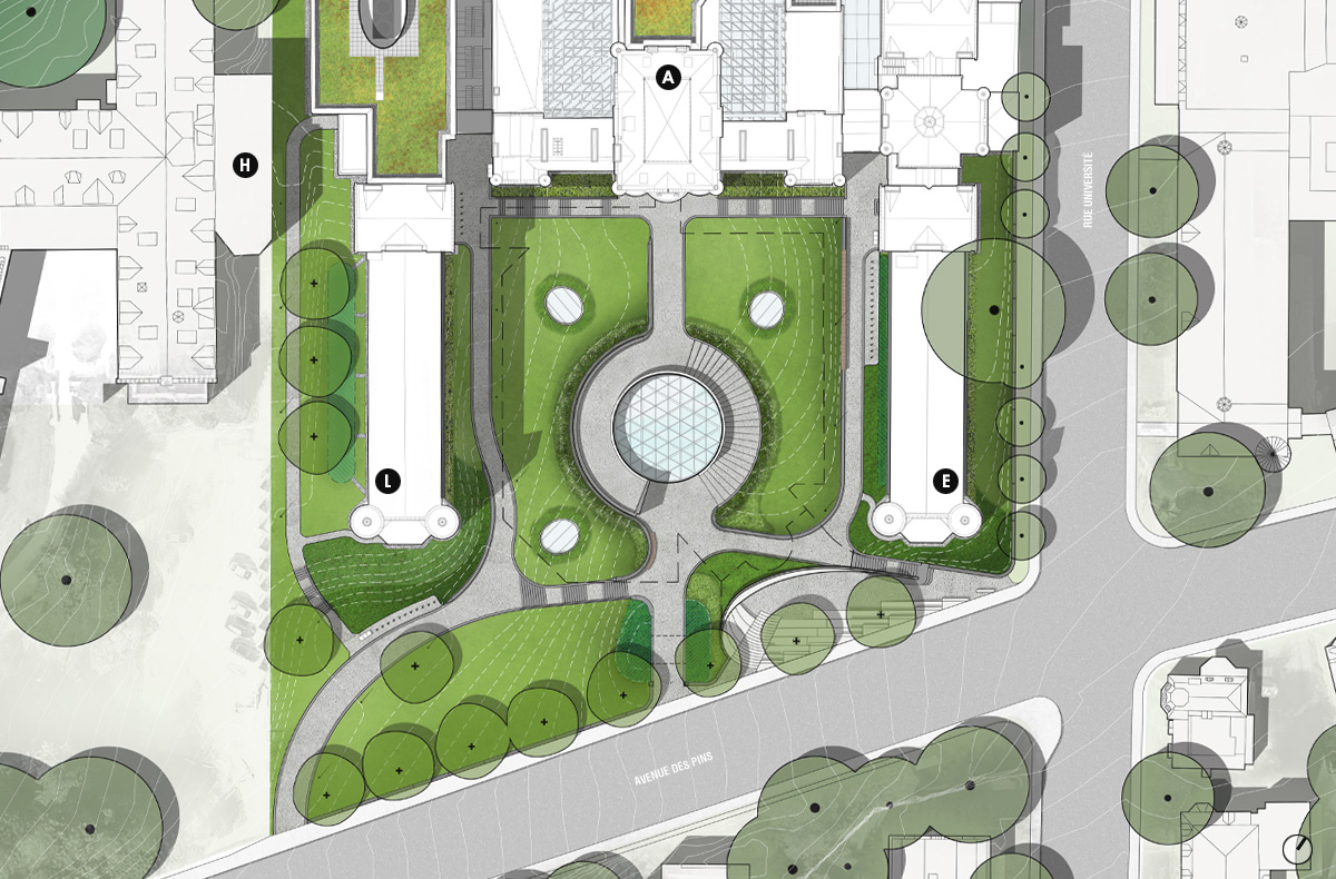 Plan préliminaire de Frederick Law Olmsted, 13 janvier 1896 - Olmsted & Eliot Landscape Architects, mis en couleurs par Claude Cormier et Associés