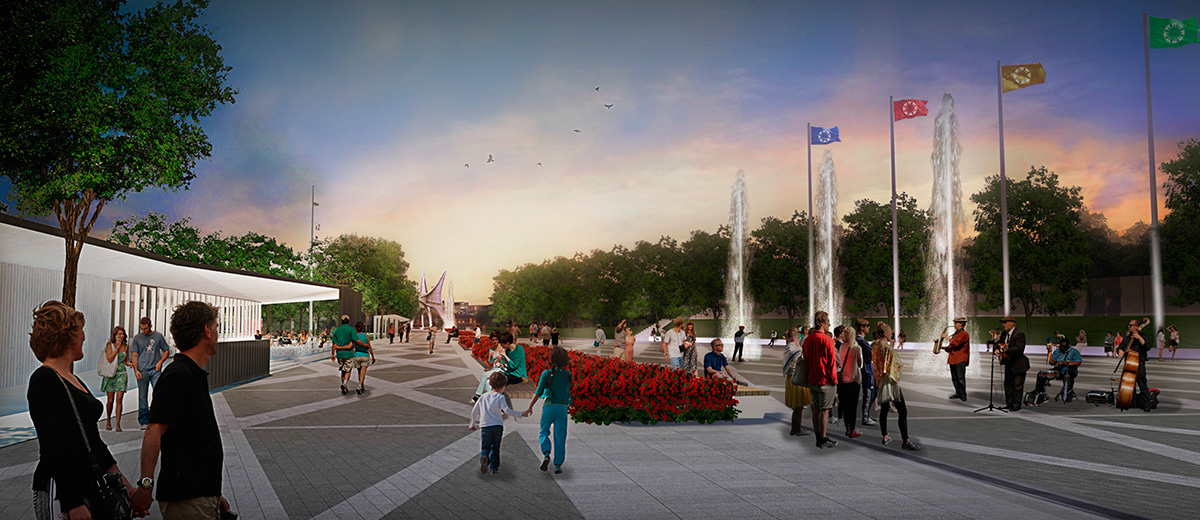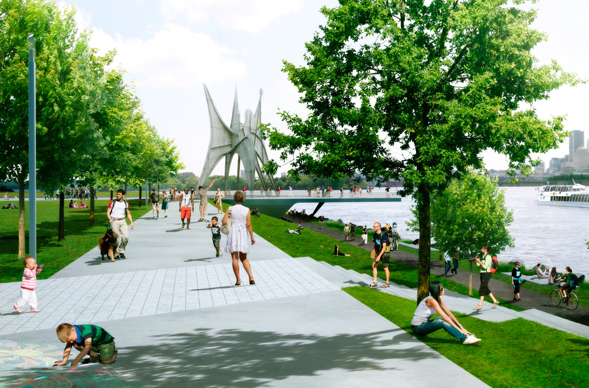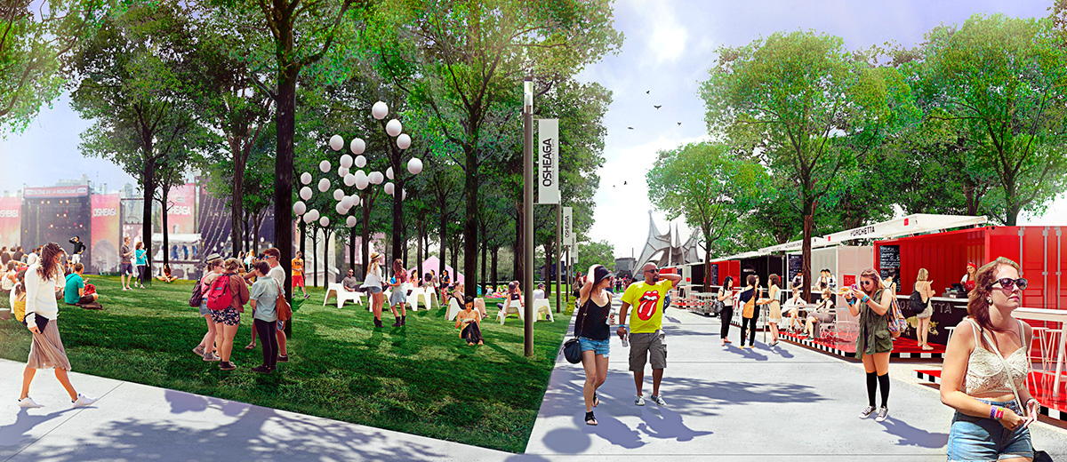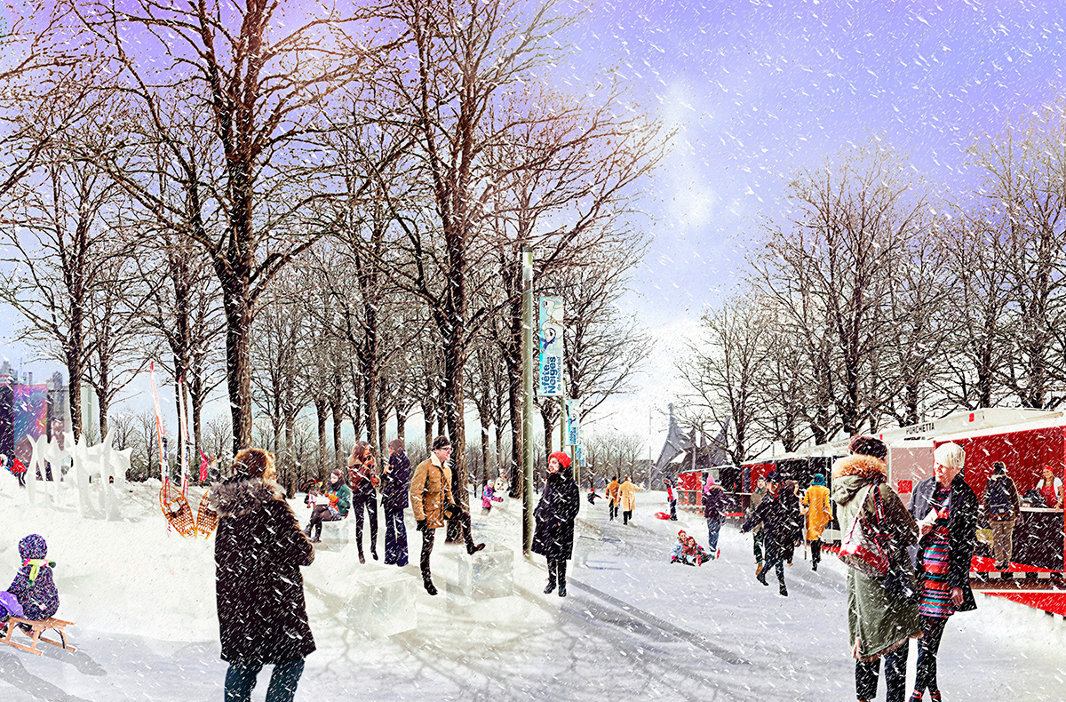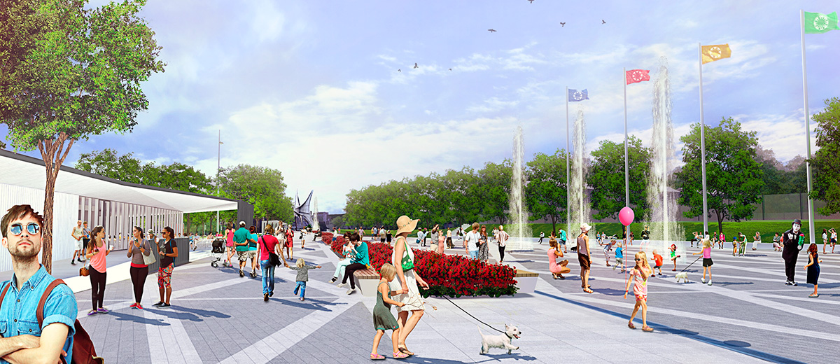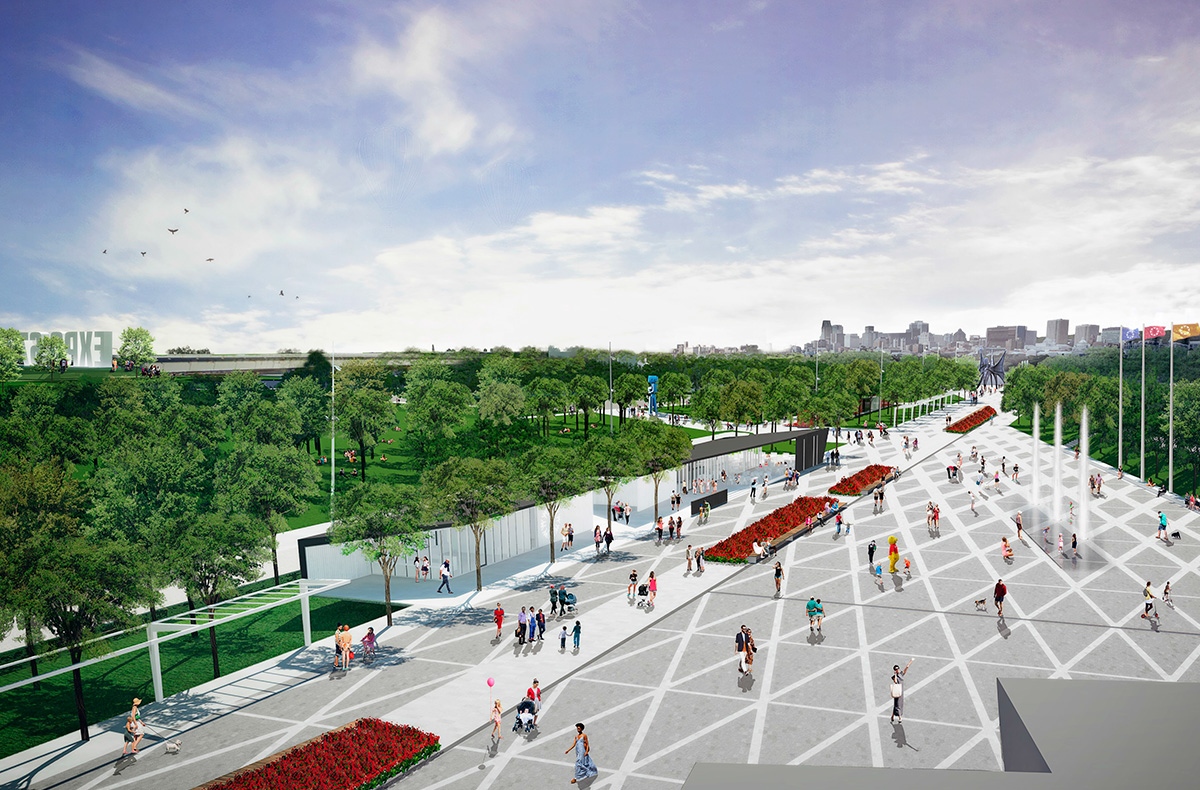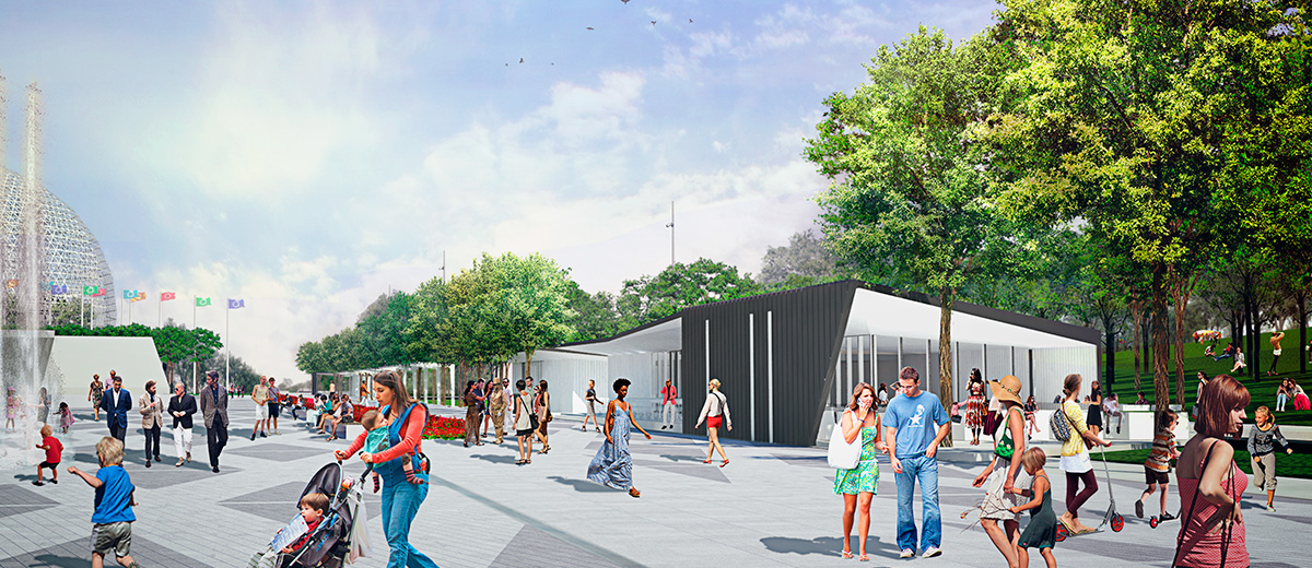 Rendu, l'allée Calder vers la Biosphère, CC+A / Daoust Lestage inc.