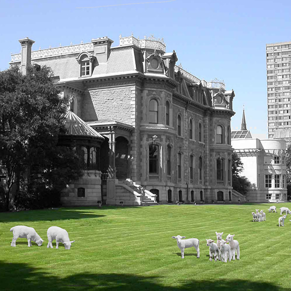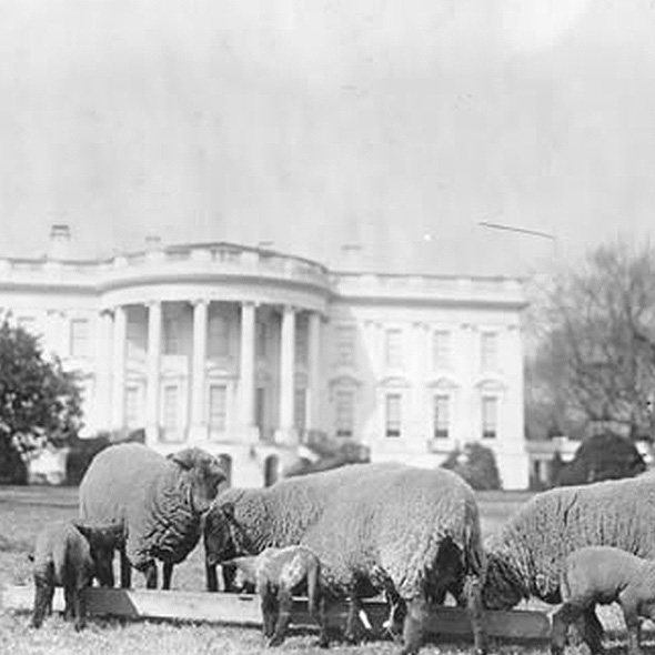 Moutons sur la pelouse sud de la Maison blanche, USA; WhiteHouse.gov cites the library of Congress 1918