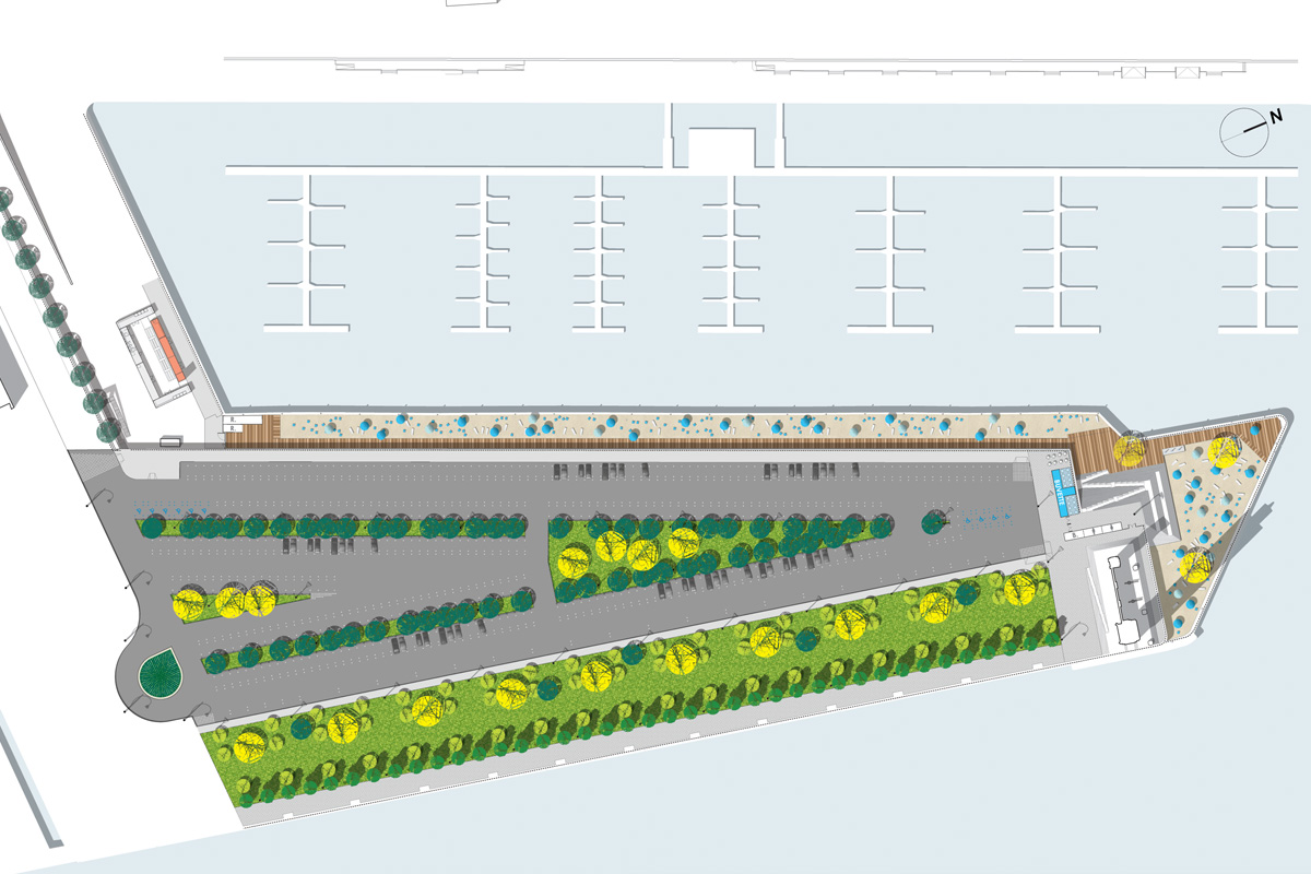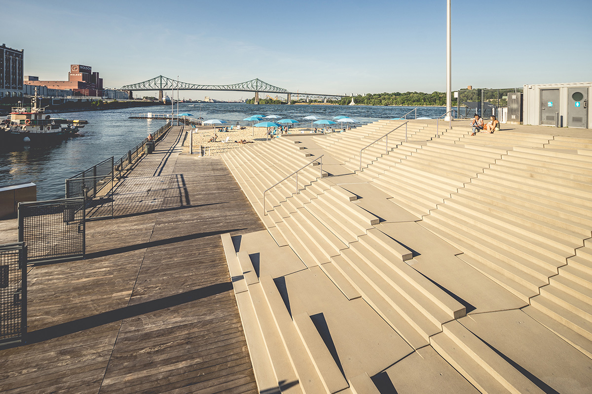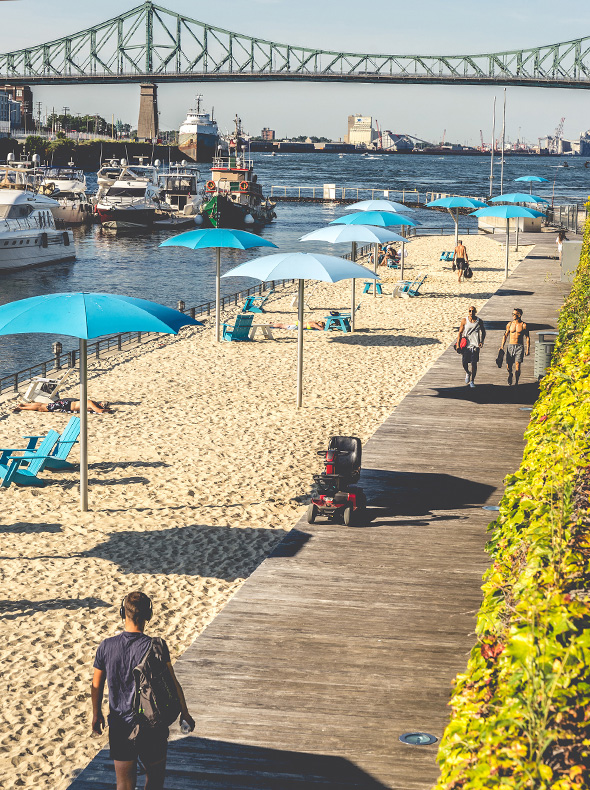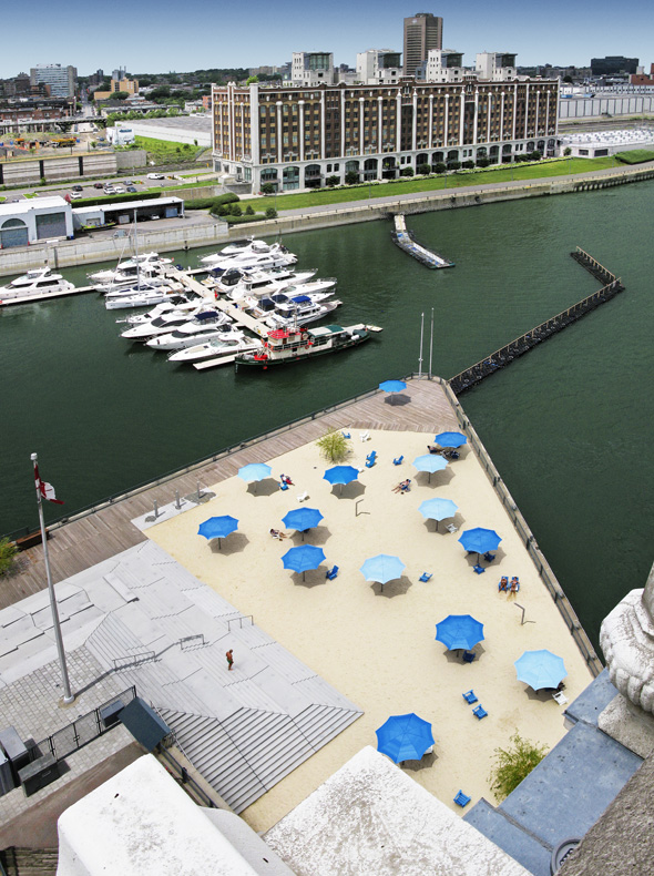 Photo, 2012, vue aérienne, plage + parc de stationnement du quai de l'Horloge - Guillaume Paradis, Claude Cormier et Associés